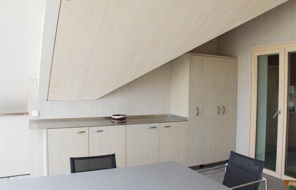 Das Wohnhaus in Glattbrugg wurde um einen Stock aufgestockt. Dabei realisierten wir die gesamte Baubegleitung und Planung sowie die Entwicklung des kompletten Innenausbaus inklusive Küchen, Badezimmer und Schlafzimmer.