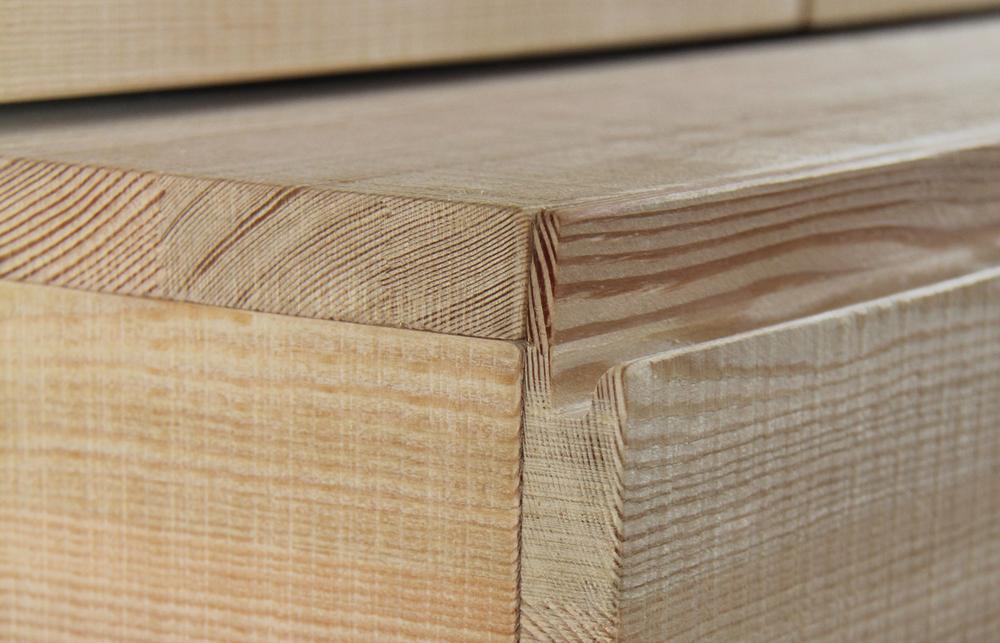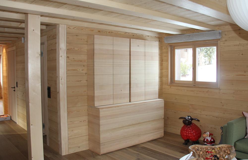 Einbauschränke | Fronten mit liegender Holzstruktur, in Lärche sägeroh gebürstet mit eingefrästen Griffprofilen |